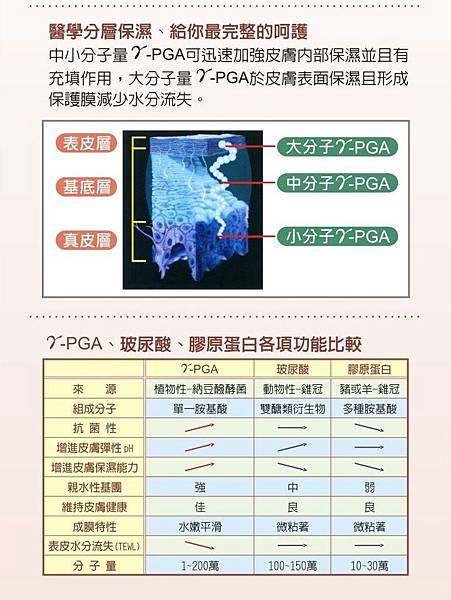 主要成份:r -PGA(聚麩胺酸)、維他命E、甘草萃取精華、白茅草萃取精華、桑白皮萃取精華、r^-PGA水膠。